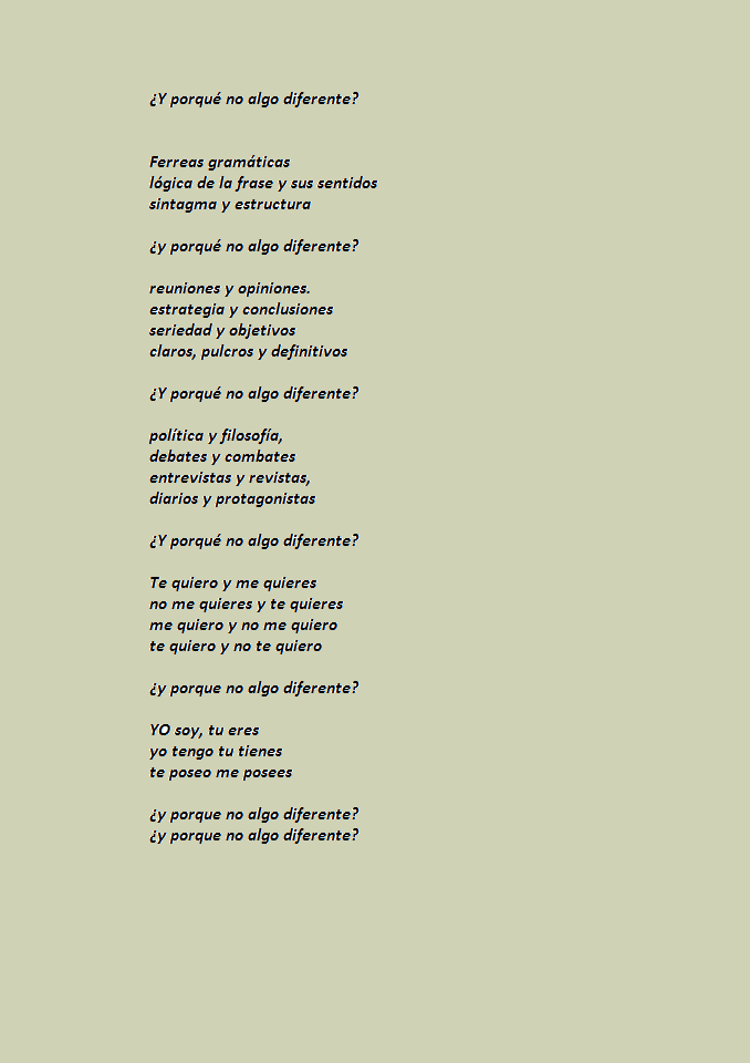 Este poema lo encontré despues de muchos años y yo mismo tuve que hacer un esfuerzo para interpretarlo. Se corresponde con una época de mi vida llena de cambios bastante importantes.